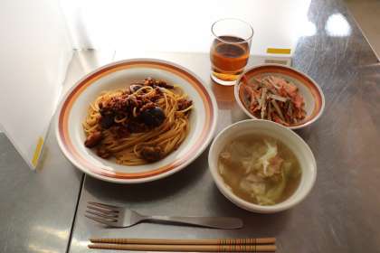美味しいボロネーゼとサラダ、コンソメスープが仕上がりました。