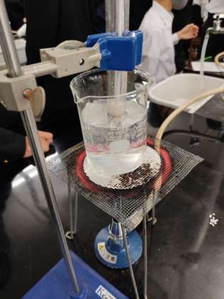 本日は1年生の理科実験でパルミチン酸の融点を調べる実験を行いました。