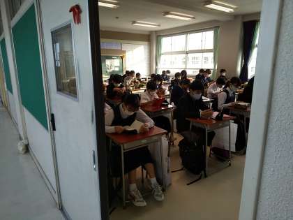 冬型の気圧配置で寒いですが、気持ちの良い青空が広がった月曜の朝です。今日は朝会がないので登校した生徒は教室で朝読書です。どのクラスも落ち着いた雰囲気の中、みんなしっかりと本に集中しています。今週も素晴らしいスタートができました。今学期もあと2週間。頑張っていきましょう!
