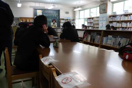 図書館では、感染予防を考え、間隔を空けて向かい合わせにならないようにして座りました。