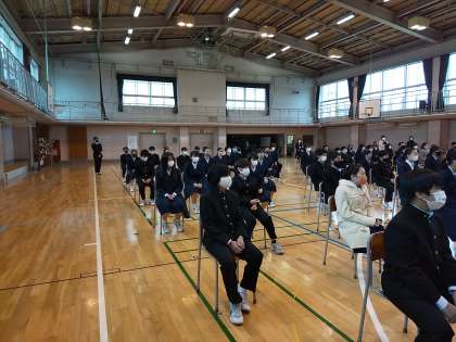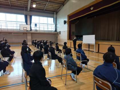 今日の6校時には1年生対象のスクールバディ講演会が行われました。「スクール・バディ」とは、いじめ防止のための生徒同士の主体的な支え合いシステムです。その基礎として、人を思いやるとはどういうことか、人との距離感の考え方、自尊心をしっかりと持つことの大切さなどをお話していただきました。とても身近で分かりやすいお話で生徒はしっかりと聞き入っていました。最後に代表の生徒がお礼の言葉をお伝えしました。とても有意義な講演会でした。ご講演いただきました先生、本当にありがとうございました。