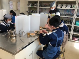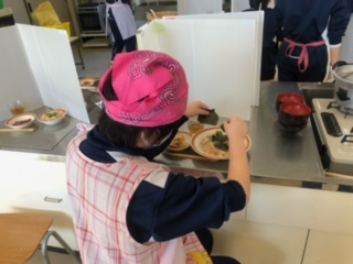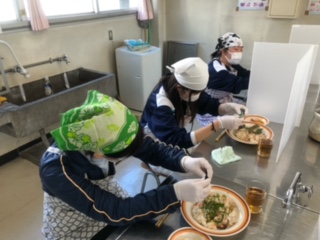 授業がんばっています(ときわ学級 調理実習) 公開日 2021/01/22 更新日 2021/01/22 ときわ学級 仕上げは、それぞれがちらしずしの上にノリを散らしていきます。散らし方は人それぞれです。美味しそうですね。