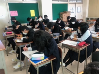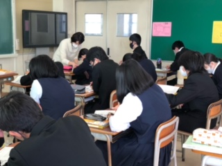 授業がんばっています(2年英語) 公開日 2021/01/25 更新日 2021/01/25 できごと 2年生の今日の英語は「長文読解を克服するコツをつかむ」がテーマです。固有名詞や接続詞をチェックすることや、『最も』『絶対』『必ず』という表現に注目!など、長文読解に必要なコツを学んだ後、それぞれが長文の問題に挑んでいました。