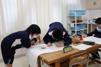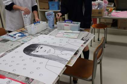ときわ学級 美術授業 共同制作『3年生の絵』 公開日 2021/01/27 更新日 2021/01/27 ときわ学級 今日も美術の授業は『3年生の絵』を共同制作しています。 1、2年生が3年生とペアを組み、協力して3年生の絵を描いています。大きな作品になるので、完成すると感動します。 この授業が始まると「あ〜、もう少しで3年生が卒業していくのだな。。。」と思います。嬉しいような淋しいような複雑な気持ちになります。 生徒はとても楽しそうに取り組んでいます。