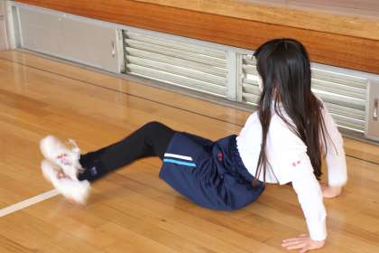 「あ〜、今日もよく走ったわ。水筒の水を飲んだら、少し元気になったな。休憩時間の間に、ちょっと1人で演技の練習をしちゃおうっと!」