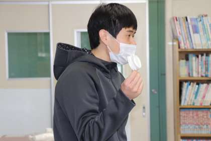 「じゃ〜今度は、9個の紙コップを並べて、その上に板を置きます。この上に乗ったら、どうなるでしょうね〜。また予想してみてください。」