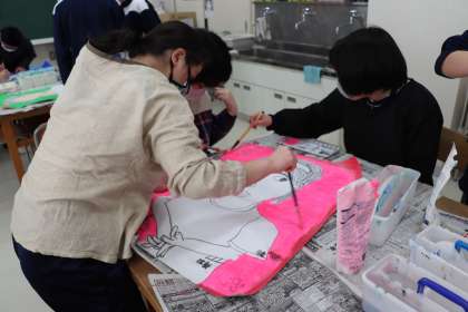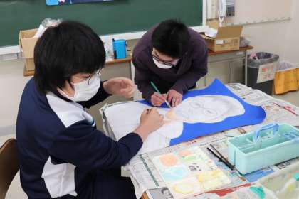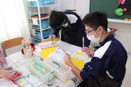 ときわ学級 美術 公開日 2021/02/03 更新日 2021/02/03 ときわ学級 美術の授業は、共同制作「3年生の絵」が続いています。 下書きが終わりました。今は色を塗り始めたところです。背景の色から塗り始めているチームがほとんどです。 背景の色にもやっぱりこだわりがあります。ピンクが好きな生徒は、いつもピンクを選びます。「ピンクが大好きなのよ〜。」と話してくれています。 「この生徒はブルー、この生徒はイエロー。やっぱりな。わかるわかる。」と思いながら、見てまわりました。