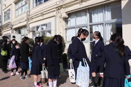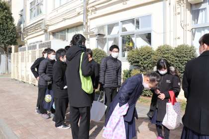 ときわ学級 総合「買物学習」 公開日 2021/02/04 更新日 2021/02/04 ときわ学級 2時間目は総合「買物学習」です。明日の調理実習で使う食材の買物をします。 校庭に並んで、今日はみんなでSEIYUに行きます。