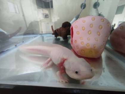 松中の生き物の様子 公開日 2021/02/05 更新日 2021/02/04 できごと 現在、松沢中学校ではおよそ1年半前からウーパールーパーを第1理科室前で飼育しています。 飼育当初は体調7〜8センチ程度でしたが、現在は20センチ以上の大きさになり、いつも元気に水槽の中を泳いでいます! 餌についても毎日あげることができますので、気になる人は餌をあげてみましょう。