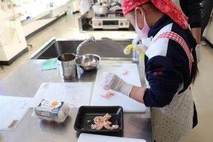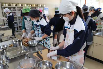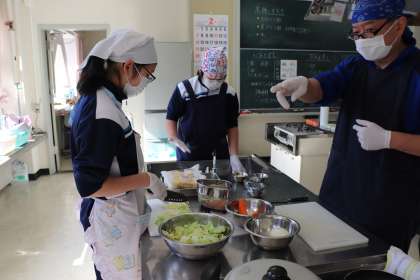 ときわ学級 調理実習 公開日 2021/02/05 更新日 2021/02/05 ときわ学級 「キャベツ切れました。」「あっちから鍋持ってきてください。」 「鶏肉を切ろう。パックから出して〜。」 「かまぼこを切ったの〜。どう?」