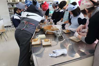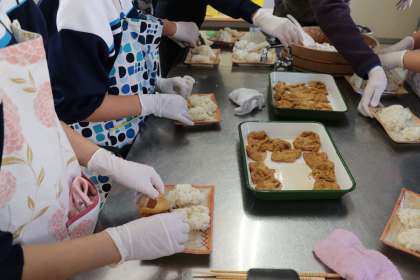 ときわ学級 調理実習 公開日 2021/02/05 更新日 2021/02/05 ときわ学級 いなりずしを作る時は、みんなとても真剣です。きれいに作りたいから、誰も話をしません。「袋が破けないかな〜?」「きれいな形に作れるかな〜?」と、どの生徒も一生懸命です。