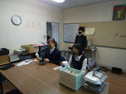 2月の生徒朝会 公開日 2021/02/08 更新日 2021/02/08 できごと 今朝は2月の生徒朝会が行われました。先日の各種委員会で話し合われた内容について委員長から説明がありました。最後に松中祭実行委員長からの連絡もありました。各教室では、背筋を伸ばししっかりと放送を聴いています。 今年度の生徒朝会も残りあと1回となりました。引き続き充実した生徒会活動にしていきましょう。