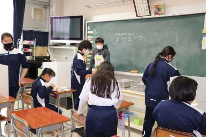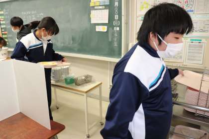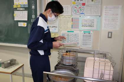 日直の号令「姿勢を正してください。ごちそうさまでした。」で給食が終わります。みんな列を作って、片付け始めます。
