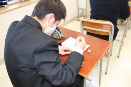 最後は今日の授業の感想を書いています。楽しく学べたので、1時間があっという間に終わってしまったようでした。どの生徒も、鉛筆の動きが止まりません。思ったことや感じたことが、たくさんあったみたいです。