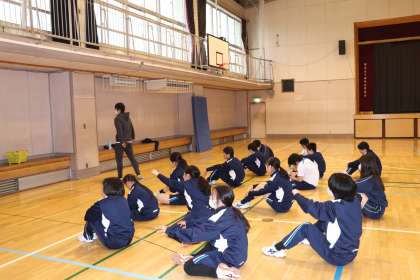 週末の暖かい日から一転して、今日は寒い月曜日になりましたが、ときわ学級の生徒は体育館でティーボールの授業を行っています。