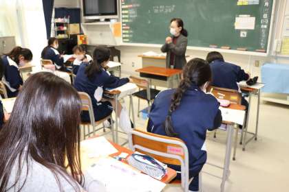 体育で体を動かした後は社会の授業です。土曜日の夜にあった地震の話題から、東北地方の画像を見ました。今日は、東北地方と北海道のことを学習しています。
