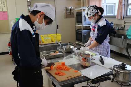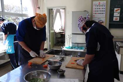 調理実習は『マーボー春雨、中華スープ、ごはん、フルーツポンチ』の2回目です。1回目の経験が生かされています。先生の指示がなくても、自分で考えてできる生徒が多いです。