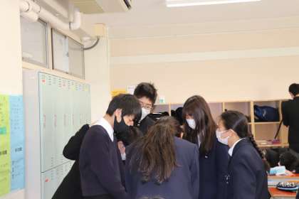 ときわ学級 朝の様子 公開日 2021/03/04 更新日 2021/03/04 ときわ学級 3月4日、木曜日の朝です。卒業式まであと13日になりました。 教室をのぞくと、4〜5人の生徒が集まって話していました。「密ですよ〜。密になっていますよ〜。」と声をかけにいきました。 3年生の一人が、4月から通う学校で渡された宿題を持ってきていたのです。分厚い冊子になっているのを見て、「え〜、こんなに宿題が出ているの〜?」と盛り上がっていたことがわかりました。