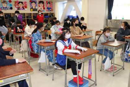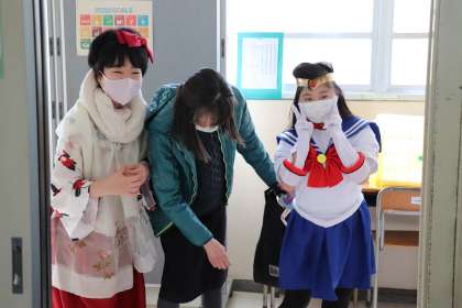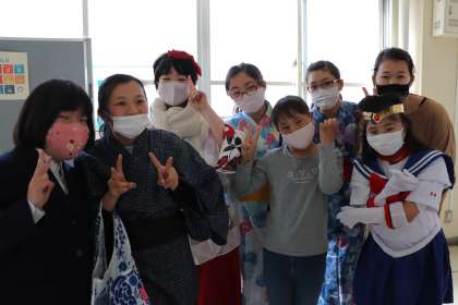 ときわ学級 卒業を祝う会「劇」の練習 公開日 2021/03/11 更新日 2021/03/11 ときわ学級 5、6時間目は『卒業を祝う会』で発表する劇の練習をしました。今日は初めての、衣装合わせです。 衣装を着ると、セリフも自信をもって言うようになるから不思議です。役が本当の自分のようになっている生徒もいました。 明日からも衣装を着て、本番まで練習を重ねます。