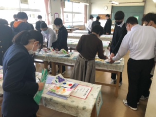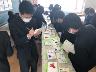 松中祭展示作品を見学中! 公開日 2021/03/12 更新日 2021/03/12 できごと クラスごとの生徒見学も、今日の3年生の見学で最後です。みんな真剣に仲間の作った作品を見ていました。素晴らしい作品のオンパレードです!