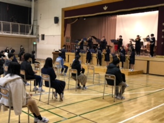 残り2曲は、管弦楽も入っての演奏です。鑑賞している生徒たちの中からは、思わず手拍子が入り、楽しい雰囲気です。