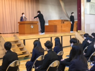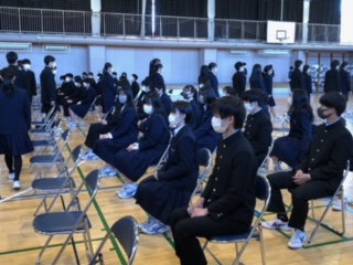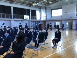 ?19日の卒業式を目前にして、3年生は卒業式の入場から退場までの流れを確認しながら、式練習をしています。みんな真剣に臨んでいます。