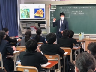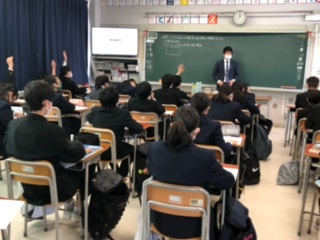 1年生の今日の社会の授業の目標は「ヨーロッパの人々が航海に出た理由と結果をおさえる」です。「船を使った旅についての意識調査」など、あらかじめロイロノートで実施したアンケート結果を確認しながら、生徒の興味関心を引き出していきます。授業の中では、本物の胡椒の粒を見て確認する時間や、デジタル教科書や資料集を使って考察する時間もあり、生徒たちは積極的に授業に参加していました。