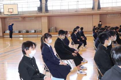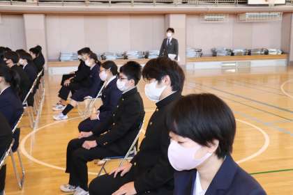 最後の卒業式の練習をしました。「別れの言葉」を話す代表生徒も、動きがスムーズになってきました。