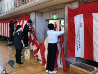 今年の卒業式は、新型コロナ感染症予防のため参加人数が絞られ、1、2年生は参加できません。でも、前日の今日、2年生が会場作りを進めてくれています。卒業式は、多くの人たちが支えてくれて、はじめて成り立つものです。3年生の皆さん、その思いをしっかり受け止めて明日の卒業式に参加してくださいね!