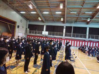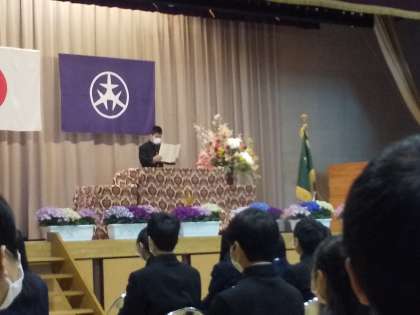 在校生代表の「送る言葉」、そして卒業生代表による「お別れの言葉」です。どれもとても練られた文章で、会場にいたみなさんはこれらの言葉に聞き入っていました。中でも卒業生の「お別れの言葉」は、卒業生全員で言葉を考えたそうです。それだけに、胸にしみいる内容でした。