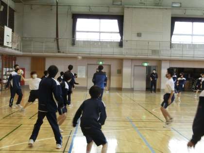 今日の1年生の特別プログラム。午後はドッヂボール大会を行いました。試合の前に円陣を組んで気合を入れるクラスもありました。勝ち負けだけに囚われるのではなく、お互いに良いプレーを認めあうなど、とても良い雰囲気の時間を過ごすことができました。中学生としての一年間の成長を実感できた一日でした。