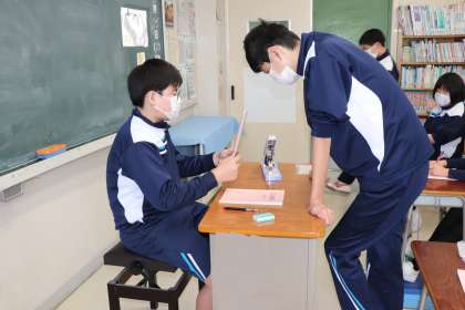 春休みが終わると、1年生は2年生に。2年生は3年生になります。春休みの日課表の絵の横に「1、2年生をひっぱっていきます。」と書いていた生徒がいました。