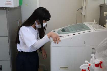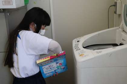 給食のふきん洗濯も、一人でしっかりやっています。「押すボタンがたくさんあるね〜。難しそうだね〜。」という先生の問いかけに「わたし、もう大丈夫なの〜。わかっているから〜。まかせて!」と答えていました。