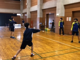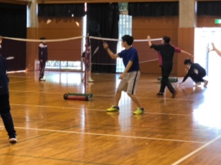 格技室ではバトミントン部が練習しています。今日はちょっと動くと汗がふき出る暑さです。