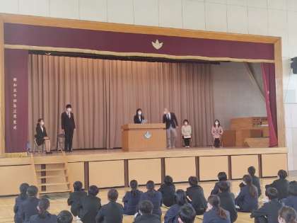 本年度は着任式にて、5名の教員と1名の事務員から紹介されました。