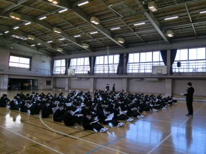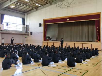 学年の先生方から自己紹介が行われ、その後、学年目標や中学校生活で大切にしてほしいことなどを確認しました。