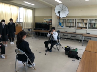 今日は、ときわ学級から3年生まで、生徒手帳などで使う証明写真を撮っています。1年生は、静かに並んで自分の番を待っていました。写真屋さんを前にすると、何となく緊張しますね!