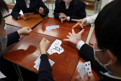 今年度、第1回目の活動内容は『トランプ』です。部長を中心に話し合って決めました。笑い声が聞こえてきます。楽しそうに活動しています。