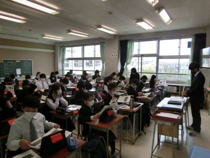 生徒の皆さんは早速、タブレットで自己紹介動画と自己紹介文を作成しました。