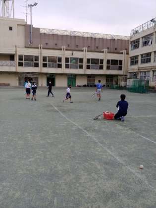 基礎練習に1年生も一緒に参加しています。1年生もなかなか上手です。上級生は、1年生に教えながらも、日曜日のブロック大会に向けて練習しています。