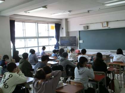 そのことについて、本日、保健体育科教員より全校生徒に向けて、放送にてお知らせしました。教室では、放送をしっかりと聞き、延期となったことを受け止めようとしている姿がみられました。