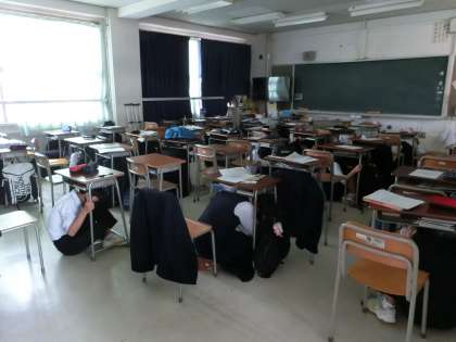 本日6校時終了10分前に地震を想定した避難訓練を行いました。
