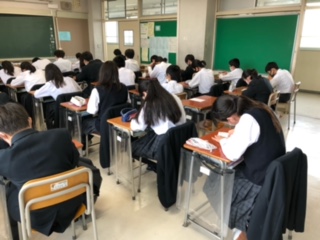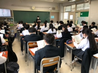 1年生国語の授業では、授業の初めに漢字テストを行っています。短時間の学習活動ですが、授業開始のよい切り替えにもなっているようです。今日から「ダイコンは大きな根?」という単元に入りました。この単元は説明文を扱っていて、「構成に注意しながら段落の役割について考える」「わかりやすい説明の工夫を考える」ことを学ぶのが目標です。今日は、朗読CDを聴いたり、文の構成を考えたりする学習活動を行っていました。生徒たちは真剣に取り組んでいました。