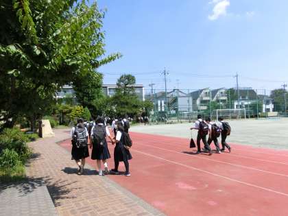 それぞれ区内の他の中学校が会場のため、午後の授業をカットして参加させていただいています。