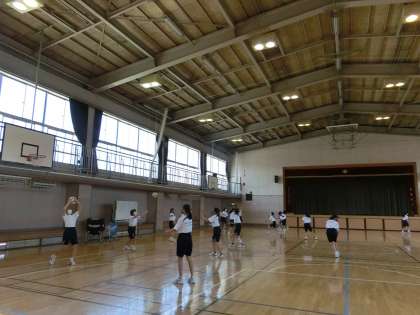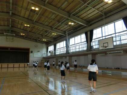 1年生の保健体育授業では、バレーボールに取組んでいます。体育館のエアコンからは冷たい風はでていますが、運動するとやはり汗がでてしまいます。