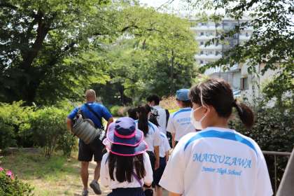 ときわ学級 校外学習の様子2 公開日 2021/06/15 更新日 2021/06/15 ときわ学級 今日は校外学習でした。 校長先生や副校長先生、通常級の先生に見送られながら出発しました。 雨が心配されていましたが、天気が良い中行くことができて良かったです。 いつもの買物に行く道を、ほんの少し伸ばして杉並区の下高井戸おおぞら公園へ行ってきました。 緑いっぱいの道を歩いて、楽しく行くことができました。