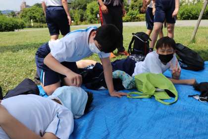 ブルーシートで休んだり、広場でソフトフリスビーで遊んだりしました。