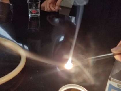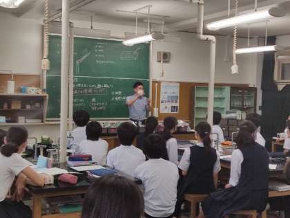 画像は2年生の理科の授業でマグネシウムの燃焼を取り扱ったものです。燃焼の激しい様子を興味深そうに観察している生徒たちの様子が見られました。