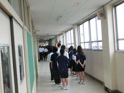 今回は、雨のため校庭に避難することができず、廊下に整列するところまでの訓練でした。