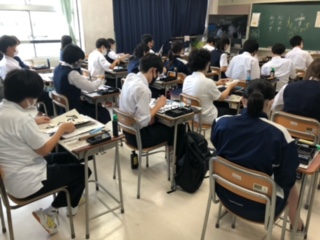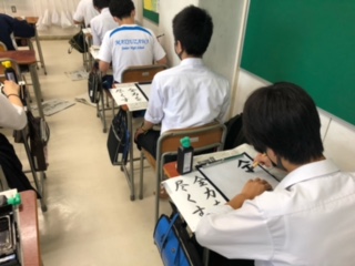 3年生の国語の授業では『毛筆』を行っています。心落ち着いて、自分に問いかけるように「全力を尽くす」という文字を書いていきます。
